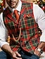 Ανδρικά Veste Γιλέκο Gilet Χριστούγεννα Διακοπές Πάρτι Χριστούγεννα Μοντέρνα Φθινόπωρο Χειμώνας Τσέπη Κουμπιά Πολυεστέρας Άνετο Καρό Μονόπετο Ενός Κουμπιού Πέτο Κανονικό Σκούρο κόκκινο Ρουμπίνι Γιλέκο