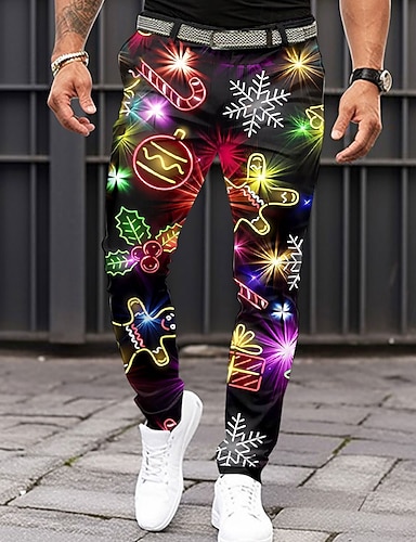 χριστουγεννιάτικη ανδρική χριστουγεννιάτικη σκηνή εμπριμέ παντελόνι νιφάδα χιονιού μελόψωμο άσχημο casual φόρεμα τσέπη με φερμουάρ στη μέση πάρτι καθημερινά ρούχα διακοπές καλοκαίρι άνοιξη φθινόπωρο