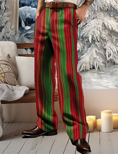 Χριστούγεννα Ανδρικά Ριγέ Παντελόνι επίσημο Μεσαία Μέση Καθημερινό Πάρτι ΕΞΩΤΕΡΙΚΟΥ ΧΩΡΟΥ Σπίτι Φερμουάρ Τσέπη Παντελόνι σε ίσιο πόδι Καλοκαίρι Άνοιξη Φθινόπωρο 3D εκτύπωση Ροζ Κόκκινο Πορτοκαλί