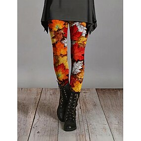 Γυναικεία Κολάν Άνετα κολάν Διακοπές Καθημερινό Πλήρες μήκος Ψηλή Μέση Γραφική Φύλλο Εκτύπωση Άνεση Άνετο Ελαστικό Causal Καθημερινά Διακοπές Πορτοκαλί Άνοιξη Φθινόπωρο Πολύ στενό