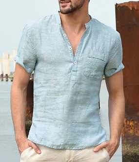 Ανδρικά Πουκάμισο λινό πουκάμισο Πουκάμισο με κινέζικο γιακά Πουκάμισο με γιακά Mandarin Πουκάμισο Popover Casual πουκάμισο Σκέτο Διακοπές Δρόμος Μαύρο Λευκό Ανθισμένο Ροζ Πράσινο Χακί Κοντομάνικο