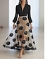 Γυναικεία Μαύρο Άνοιξη Φθινόπωρο Μακρύ φόρεμα Φόρεμα σε ευθεία γραμμή Φόρεμα σε γραμμή Α Πάρτι Επίσημο Επίσημο Πάρτι Κανονικό Φλοράλ Λαιμόκοψη V