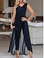 Γυναικεία Κανονικό Φόρμες Κομψό στυλ street Συμπαγές Χρώμα Μακρυμάνικο Ίσια Λαιμόκοψη V Ψηλή Μέση Δίχτυ Πάρτι Δουλειά Κανονικό Μαύρο Άνοιξη
