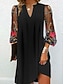 Γυναικεία Μίνι φόρεμα Φόρεμα ριχτό Καθημερινό Καθημερινά Χαλαρή Εφαρμογή Φλοράλ 3/4 Μήκος Μανικιού Λαιμόκοψη V Μαύρο Καλοκαίρι Άνοιξη Φθινόπωρο