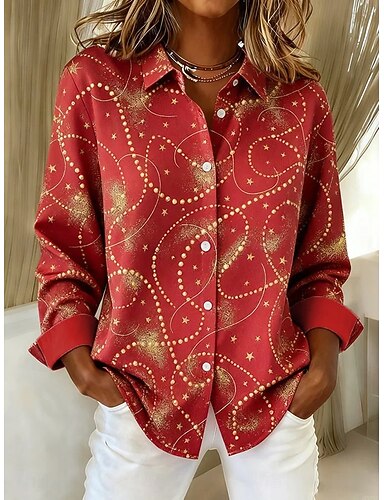 Χριστούγεννα Γυναικεία Πουκάμισο Μπλούζα Γραφική Γεωμετρικό Καρό Βίντατζ Τροπικό Στυλάτο Μακρυμάνικο Κολάρο Πουκαμίσου Κανονικά μπλουζάκια Καθημερινά Αργίες Κουρελού Κουμπιά Στάμπα