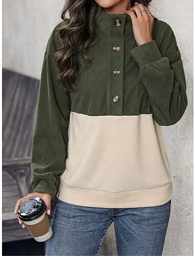 γυναικείο φούτερ casual μονόχρωμο street καθημερινά v λαιμόκοψη κουμπιά μακρύ μανίκι στρατός πράσινο φθινόπωρο χειμώνας