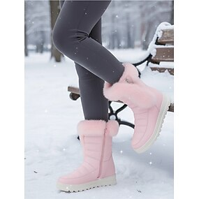 Γυναικεία Μπότες Μπότες Χιονιού ΕΞΩΤΕΡΙΚΟΥ ΧΩΡΟΥ Καθημερινά Συμπαγές Χρώμα Fleece Lined Μποτάκια μποτάκια Επίπεδο Τακούνι Στρογγυλή Μύτη Καθημερινό Ανατομικό Φο Γούνα Φερμουάρ Μαύρο Λευκό Ροζ