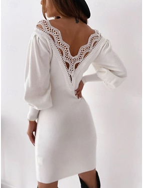 Γυναικεία Μίνι φόρεμα Φόρεμα σε ευθεία γραμμή Καθημερινό Καθημερινά Κανονικό Σκέτο Μακρυμάνικο Λαιμόκοψη V Μαύρο Λευκό Άνοιξη Φθινόπωρο Χειμώνας