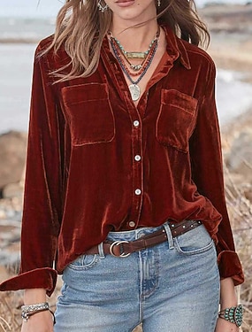 Γυναικεία Πουκάμισο Μπλούζα Σκέτο Κομψό Μακρυμάνικο Κολάρο Πουκαμίσου Κανονικά μπλουζάκια Αργίες Εξόδου Κουμπιά Κρασί Πράσινο Χακί Θαλασσί Άνοιξη Φθινόπωρο