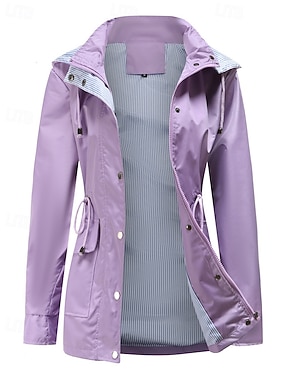 Γυναικεία Καμπαρντίνα Αδιάβροχα μπουφάν Αδιάβροχη Αντιανεμικό Φερμουάρ Τσέπη Μοντέρνα Υπαίθριο Σκέτο Εξόδου Σαββατοκύριακο Φερμουάρ Κανονικό Με Κουκούλα Κανονικό Μακρυμάνικο Εξωτερικά ενδύματα