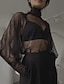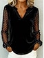 Γυναικεία Μπλούζα Δίχτυ Πουά Καθημερινό Μακρυμάνικο Ζιβάγκο Κανονικά μπλουζάκια Καθημερινά Αργίες Εξόδου Μαύρο Καλοκαίρι Φθινόπωρο