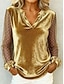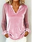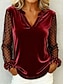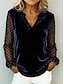 Νέος Χρόνος Γυναικεία Βελούδο Πουά Κομψό Βίντατζ Μακρυμάνικο Λαιμόκοψη V Κανονικά μπλουζάκια Καθημερινά Επισκέπτης γάμου Αργίες Θαλασσί Μαύρο Ανθισμένο Ροζ Κρασί Χρυσό Φθινόπωρο Χειμώνας