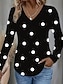 Γυναικεία Μπλουζάκι Στάμπα Γραφική Πουά Αφηρημένο Βίντατζ Μοντέρνα Στυλάτο Μακρυμάνικο Λαιμόκοψη V Κανονικά μπλουζάκια Καθημερινά Μαύρο Άνοιξη Φθινόπωρο
