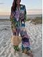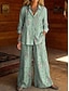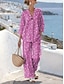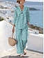 Γυναικεία Σετ Δύο Τεμαχίων Λινό Σακίδιο Παντελόνι Μπόλορο Φόρεμα 3/4 Μανίκι Λαιμόκοψη Γραφικό Εμπριμέ Πολka Dot Καθημερινό Στυλάτο Καθημερινό Παραλία Μπλε Ροζ Μωβ Καλοκαίρι Κανονική Μέτρηση
