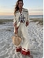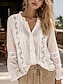 Γυναικείο Πουκάμισο Λινό Όπως Αναπνέει Ελαφρύ Μπλουζάκι Τουνίκ Με Κουμπιά Γιακάς Μακρύ Μανίκι Μόδας εκτύπωσης Κανονικά Μπλουζάκια Χαλαρό Άσπρο Άνοιξη Φθινόπωρο