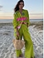 Γυναικεία Σετ δύο τεμαχίων Σετ παντελονιών μπολερό Μακρυμάνικο Κολάρο Πουκαμίσου Γραφική Πουά Στάμπα Καθημερινά Στυλάτο Causal Καθημερινά Παραλία Βυσσινί Πράσινο του τριφυλλιού Μπεζ Καλοκαίρι Κανονικό