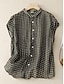 Γυναικείο Πουκάμισο Λινάρενο Ανάλαφρο Ελαφρύ Τουνίκ Πουκάμισο Κουμπωτό Μπλουζάκι Μακριά Μανίκια Γραφικό Γεωμετρικό Καρό Καθημερινά Κανονικά Τοπ Εργασίας Καθημερινά Τύπωμα Μαύρο Λευκό Ροζ Μπλέ Καφέ