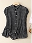 Γυναικείο μπλουζάκι V λαιμός μπλούζα με κουμπιά γραφικών γεωμετρικών πουά vintage τροπική στυλάτη αμάνικη κοντομάνικη κορυφαία καθημερινά λευκό καλοκαίρι άνοιξη