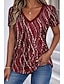 Γυναικεία Μπλουζάκι Στάμπα Γραφική Πουά Στυλάτο Κλασσικό Καθημερινό Κοντομάνικο Λαιμόκοψη V Κανονικά μπλουζάκια Καθημερινά Θαλασσί Μαύρο Ρουμπίνι Βυσσινί Πράσινο του τριφυλλιού Καλοκαίρι Άνοιξη