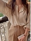 Γυναικεία Πουκάμισο Σατέν πουκάμισο Στάμπα Πουά Διακοπές Μοντέρνα Καθημερινά Μακρυμάνικο Κολάρο Πουκαμίσου Κανονικά μπλουζάκια Καθημερινά Αργίες Εξόδου Μπεζ Καλοκαίρι Άνοιξη Φθινόπωρο
