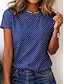 Γυναικεία Μπλουζάκι Πουά Στάμπα Γραφική Πουά Στυλάτο Κλασσικό Καθημερινό Κοντομάνικο Στρογγυλή Ψηλή Λαιμόκοψη Κανονικά μπλουζάκια Causal Καθημερινά Μπλε Μελάνι Καλοκαίρι Άνοιξη