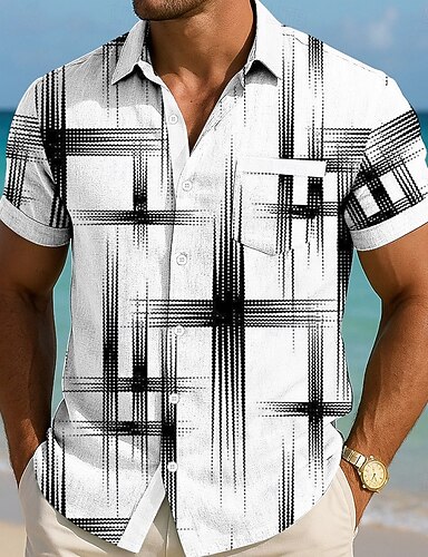 Ανδρικά Γεωμετρικό Πλέγμα / καρό Πουκάμισο Καλοκαιρινό πουκάμισο Πουκάμισο με κουμπιά Κοντομάνικο Μόδα Casual Διακοπές Αργίες Streetwear Καλοκαίρι Απορρίπτω 3D