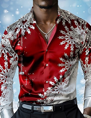 Χριστούγεννα Ανδρικά Χιονονιφάδα Σατέν πουκάμισο Επίσημο Πουκάμισο Πουκάμισο με κουμπιά Μακρυμάνικο Καθημερινό Διακοπές Βραδινό Ρούχα για Πάρτυ Καθημερινή Ένδυση Καλοκαίρι Άνοιξη Φθινόπωρο