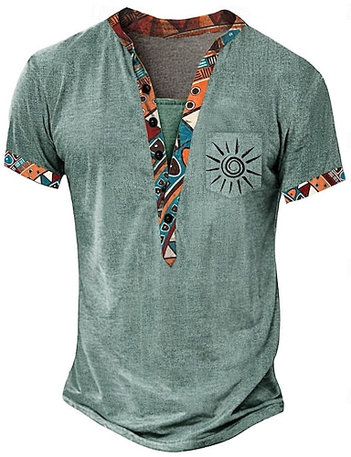 Ανδρικά Φυλής Etnic Μπλουζάκι Πουκάμισο Henley Κοντομάνικα Κοντομάνικο Υψηλής Ποιότητας Βασικό Etnic ΕΞΩΤΕΡΙΚΟΥ ΧΩΡΟΥ Causal Καθημερινά Καλοκαίρι Καφέ Πράσινο Ανοικτό Χακί Χένλι Μπλουζάκι Henley