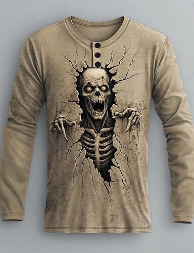 Ανδρικά Γραφική Ζόμπι Πουκάμισο Henley Μακρυμάνικο Μοντέρνα χαριτωμένο στυλ Καθημερινά Causal Αργίες Εξόδου Φθινόπωρο Άνοιξη & Χειμώνας Μπλε Απαλό Βυσσινί Πράσινο του τριφυλλιού Χακί Γκρίζο Χένλι
