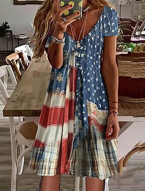 Γυναικεία Μίνι φόρεμα Καθημερινό φόρεμα Καλοκαιρινό φόρεμα Μοντέρνα Καθημερινά Παραλία Σαββατοκύριακο Κανονικό Εθνική Σημαία Κοντομάνικο Λαιμόκοψη V Θαλασσί Σκούρο μπλε Άνοιξη Φθινόπωρο