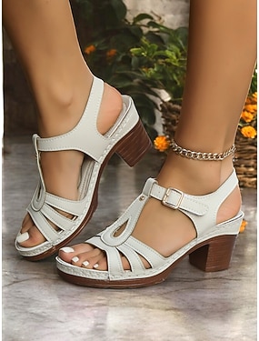 γυναικεία vintage πέδιλα με ανοιχτό τακούνι - κομψά καλοκαιρινά παπούτσια με λουράκι με αγκράφα και κοίλο σχέδιο για casual, εργασιακές ή υπαίθριες περιστάσεις