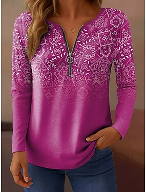 Γυναικείο T-shirt Μακρυμάνικο Quarter Zip Μακρυμάνικο Καθημερινό Ombre Γραφικών Paisley Κομψό Vintage Στυλάτο V Λαιμό Κανονικά Τοπ Καθημερινά Κόκκινο Μπλε Μωβ Πράσινο Χακί Άνοιξη Φθινόπωρο