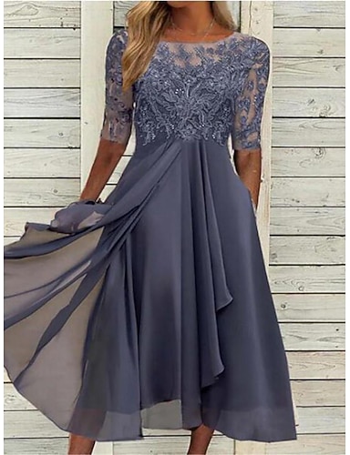 Γυναικεία Μίντι φόρεμα Φόρεμα Κοκτέιλ Φόρεμα Νυφικό καλεσμένο Φορέματα σιφόν Κομψό Επίσημο Γάμου Πάρτι Κανονικό Μισό μανίκι Στρογγυλή Ψηλή Λαιμόκοψη Θαλασσί Βυσσινί Πράσινο του τριφυλλιού Σκούρο μπλε