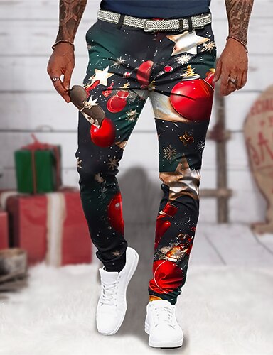 Χριστουγεννιάτικο κουδούνι Δουλειά Καθημερινό Ανδρικά 3D εκτύπωση Χριστουγεννιάτικο παντελόνι Παντελόνι επίσημο Παντελόνια ΕΞΩΤΕΡΙΚΟΥ ΧΩΡΟΥ Καθημερινά Ρούχα Streetwear Πολυεστέρας Κίτρινο Κόκκινο Μπλε