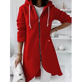 Γυναικεία Casual Jacket Μπουφάν με κουκούλα Άνετο Αναπνέει Φερμουάρ Τσέπη Καθημερινό Σκέτο Δρόμος Causal Καθημερινά Ρούχα Φερμουάρ Μακρύ Με Κουκούλα Κανονικό Μακρυμάνικο Εξωτερικά ενδύματα