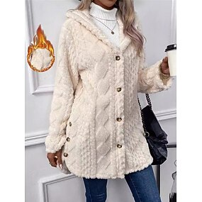 Γυναικεία Μπουφάν fleece Παλτό γούνα Μπουφάν με κουκούλα Διατηρείτε Ζεστό Αναπνέει Τσέπη Fleece Lined Καθημερινό Σκέτο Διακοπές Δρόμος Καθημερινά Ρούχα Εξόδου Μονόπετο Κανονικό ΦΟΥΤΕΡ με ΚΟΥΚΟΥΛΑ