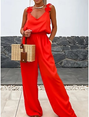 Γυναικεία Κανονικό Συνολικά Κομψό στυλ street Συμπαγές Χρώμα Αμάνικο Πλατύ Πόδι Τσέπη Δρόμος Καθημερινά Κανονικό Μαύρο Ανθισμένο Ροζ Χακί Καλοκαίρι