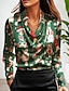 Γυναικεία Πουκάμισα εργασίας Φλοράλ Κομψό Βίντατζ Τροπικό Μακρυμάνικο Κολάρο Πουκαμίσου Κανονικά μπλουζάκια Δουλειά Βραδινό Ρούχα για Πάρτυ Ραντεβού νυχτερινά ρούχα Πράσινο του τριφυλλιού