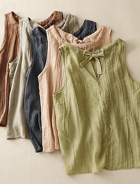 Γυναικεία Μικροκαμωμένη Καμισόλ Tank Top Λινό Γιλέκο Συμπαγές Χρώμα Καθημερινό Στυλ Παραλίας Αμάνικο Λαιμόκοψη V Κανονικά μπλουζάκια Καθημερινά Ρούχα παραλίας Ρούχα διακοπών Εξώπλατο