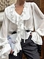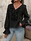 Γυναικεία Πουκάμισο Συμπαγές Χρώμα Στυλάτο Καθημερινό Μακρυμάνικο Λαιμόκοψη V Κανονικά μπλουζάκια Καθημερινά Με Βολάν Μαύρο Λευκό Άνοιξη Φθινόπωρο Χειμώνας