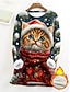 Γυναικεία Φούτερ πουλόβερ Γραφική Γάτα Άσχημο Χριστούγεννα Ζεστό Καθημερινό Ασαφής Μακρυμάνικο Στρογγυλή Ψηλή Λαιμόκοψη Μακριές μπλούζες Δρόμος Causal Ροζ Ανοικτό Μαύρο Σκούρο Ροζ Θαλασσί