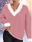 Χριστουγεννιάτικα γυναικεία μπουφάν με υφή, απλά, κομψά, ζεστά, αρκουδάκια, μακρυμάνικα, V ντεκολτέ, κανονικά μπλουζάκια, βραδινά ρούχα, καθημερινή ένδυση, casual, ροζ, κόκκινο, μπλε, άνοιξη,