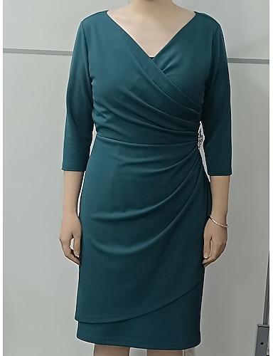 Γυναικεία Μίνι φόρεμα Φόρεμα σε ευθεία γραμμή Φόρεμα με δέσιμο στα πλάγια Κομψό Επισκέπτης γάμου Κοκτέιλ Πάρτι Σουρωτά Κανονικό Συμπαγές Χρώμα 3/4 Μήκος Μανικιού Λαιμόκοψη V Κολάρο Πουκαμίσου