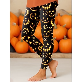 Γυναικεία Παντελόνια Κολάν Άνετα κολάν Κομψό στυλ street Καθημερινό Πλήρες μήκος Ψηλή ΜέσηPantsHalloween Κολοκύθα Ελαστική μέση Στάμπα Ικανότητα να αναπνέει Άνετο Ελαστικό