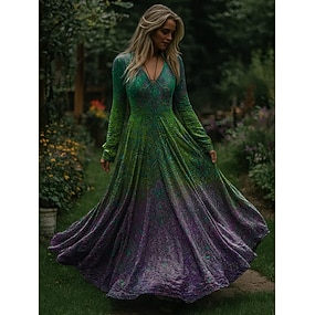 Γυναικεία Μακρύ φόρεμα Φόρεμα σε γραμμή Α Φόρεμα Fit And Flare Πάρτι Γενέθλια Καθημερινό Πάρτι Γραφείο Επισκέπτης γάμου Χαλαρή Εφαρμογή Φλοράλ Γραφική Μακρυμάνικο Στρογγυλή Ψηλή Λαιμόκοψη