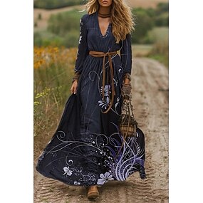 Γυναικεία Μακρύ φόρεμα Φόρεμα για τον ήλιο Φόρεμα σε γραμμή Α Διακοπές Καθημερινό Μπόχο Πάρτι Αργίες Παραλία Χαλαρή Εφαρμογή Φλοράλ Γραφική Γεωμετρικό Μακρυμάνικο Λαιμόκοψη V