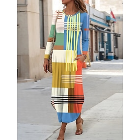 Γυναικεία Μίντι φόρεμα Φόρεμα σε ευθεία γραμμή Κοντομάνικο φόρεμα Διακοπές Καθημερινό Μπόχο Αργίες Ημερομηνία Κανονικό Γραφική Γεωμετρικό Αφηρημένο Μακρυμάνικο Στρογγυλή Ψηλή Λαιμόκοψη