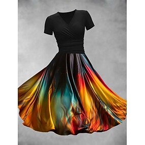 Γυναικεία Μίντι φόρεμα Φόρεμα σε γραμμή Α Καλοκαιρινό φόρεμα Φόρεμα Fit And Flare Πάρτι Καθημερινό Καθημερινά Αργίες Κανονικό Γραφική Συνδυασμός Χρωμάτων Αφηρημένο Κοντομάνικο Λαιμόκοψη V