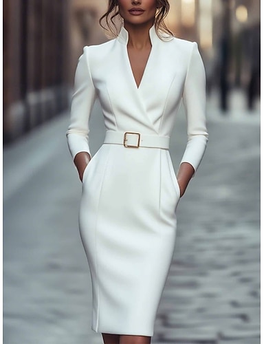 Γυναικεία Μίντι φόρεμα Φόρεμα Bodycon Ημιεπίσημα φορέματα Γραφείο Κανονικό Σκέτο Μακρυμάνικο Λαιμόκοψη V Μαύρο Λευκό Ρουμπίνι Σομόν Άνοιξη Φθινόπωρο Χειμώνας