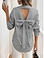 Γυναικεία Πουκάμισο Συμπαγές Χρώμα Σκέτο Ριγέ Κομψό κυρίες Στυλάτο Μακρυμάνικο Κολάρο Πουκαμίσου Μακριές μπλούζες Δουλειά Καθημερινά Εξόδου Τσέπη Κουμπιά Ανοιχτό Γκρι Άνοιξη Φθινόπωρο